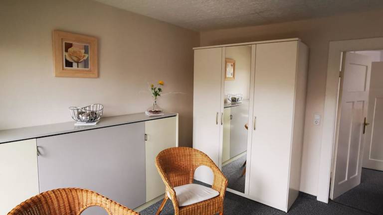 Die Fewo Hackländer bietet ein gemütliches Apartment mit einem Balkon und kostenfreiem WLAN. Das Apartment verfügt über zwei Schlafzimmer, ein geräumiges Wohnzimmer und eine voll ausgestattete Küche mit Kühlschrank und Backofen. Das Badezimmer ist mit einer Dusche ausgestattet. Handtücher und Bettwäsche werden gestellt. Genießen Sie den Blick auf den Garten von der Terrasse aus.