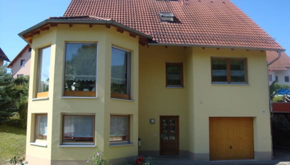 Ferienwohnung Harmonie Harmonische Urlaubstage ... in Uhlstädt-Kirchhasel, nur wenige Kilometer von Rudolstadt entfernt. Unsere 55 qm große gemütliche Ferienwohnung mit Platz für bis zu 5 Personen befindet sich im OT Etzelbach, in einer ruhig gelegenen Einfamilienhaussiedlung. Die Wohnung erreichen Sie über einen ebenerdigen separaten Zugang, so dass auch Rollstuhlfahrer hier ohne weiteres ihre Urlaubstage verleben können. Monteure und Biker sind bei uns ebenfalls herzlich willkommen - eine beschränkte Unterstellmöglichkeit für Motorräder und Fahrräder ist vorhanden. Für Angehörige, die einen Patienten in der nahegelegenen Rheumaklinik Weißenburg besuchen wollen, ist unserer Wohnung ideal gelegen da Sie in nur 5 Autominuten diese erreichen. Preise Ferienwohnung pro Nacht: (ausgenommen sind Weihnachten und Silvester) Preis für 2 Personen: 45,00 EUR Aufbettung ab 3 Jahre: 10,00 EUR Kinder 0-3 Jahre: kostenfrei Kurzaufenthalts-Zuschlag (1-3 ÜN): 15,00 EUR Endreinigung, Bettwäsche, Handtücher, sonstige Nebenkosten sind im Preis enthalten. Bitte haben Sie Verständnis, dass wir keine Haustiere aufnehmen können! Für eine Buchung sowie den Belegungskalender besuchen Sie unsere Homepage. http://www.ferienwohnungharmonie.de