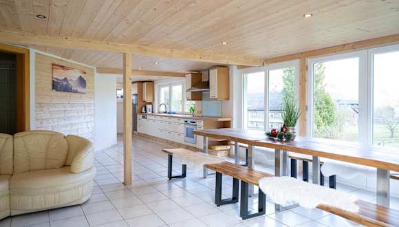 Die Ferienwohnung bietet 5 Schlafzimmer, ein Wohnzimmer, einen Flachbild-TV und eine gut ausgestattete Küche mit Geschirrspüler und Ofen. Des Weiteren stehen 3 Badezimmer mit Dusche zur Verfügung. Handtücher und Bettwäsche werden bereitgestellt.
