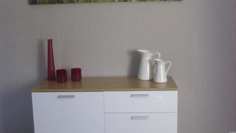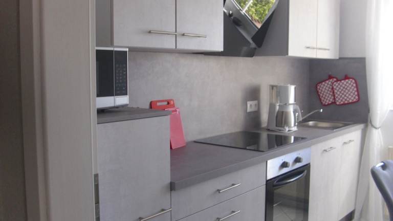 Zu den Einrichtungen der Unterkünfte gehören voll ausgestattete Küchen. Diese bieten unter anderem einen Kühlschrank, einen Geschirrspüler, einen Ofen, eine Kaffeemaschine und einen Wasserkocher. Ein Esstisch ist ebenfalls vorhanden.