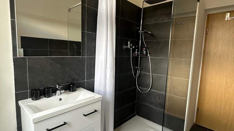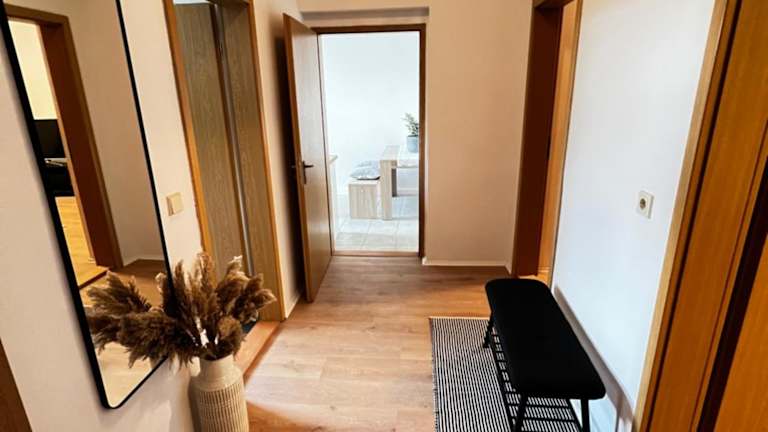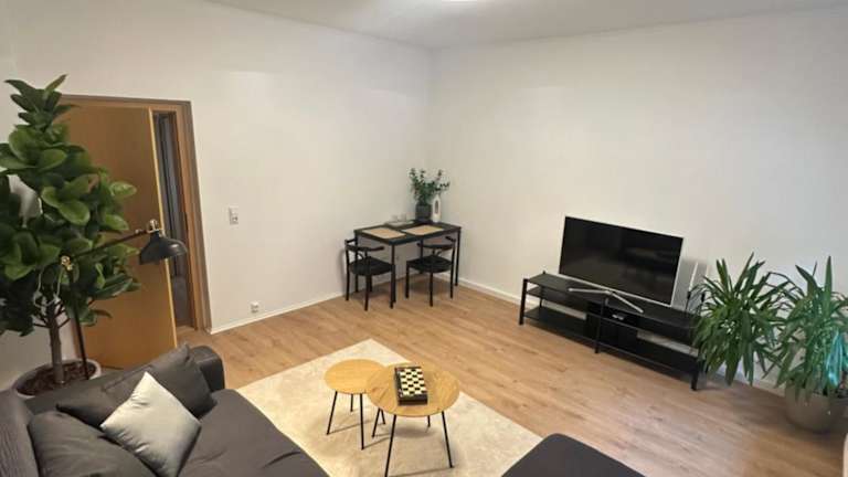 Die Ferienwohnung umfasst ein Schlafzimmer, ein Wohnzimmer mit einem Flachbild-TV, eine voll ausgestattete Küche und ein Badezimmer. Die Ausstattung ermöglicht einen komfortablen Aufenthalt.