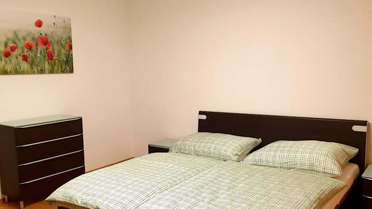 Die Ferienwohnung umfasst zwei Schlafzimmer, ein Wohnzimmer und eine voll ausgestattete Küche mit Kühlschrank und Kaffeemaschine. Ein Badezimmer mit Badewanne und Haartrockner gehört ebenfalls zur Ausstattung. Handtücher und Bettwäsche werden bereitgestellt.