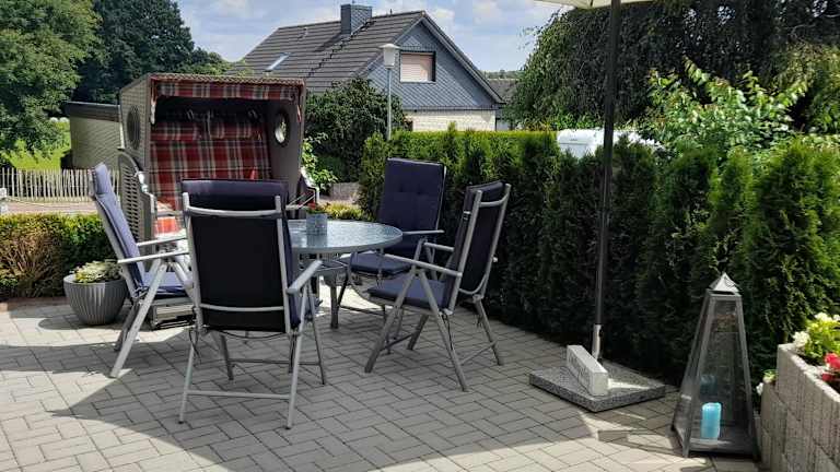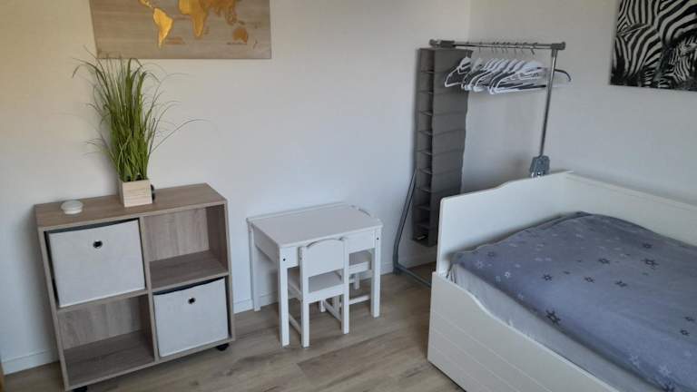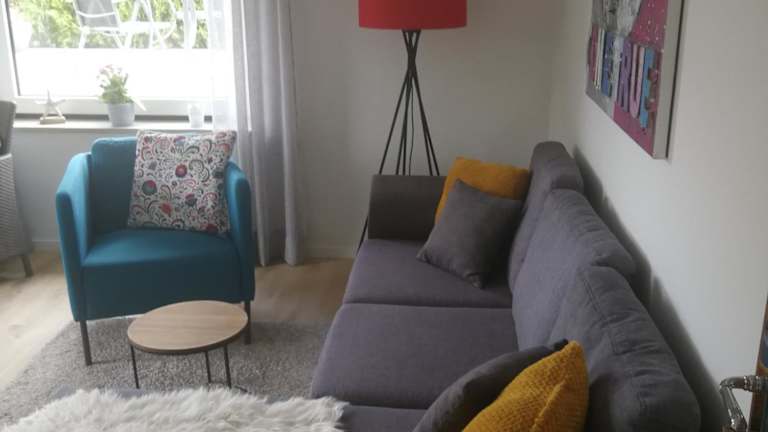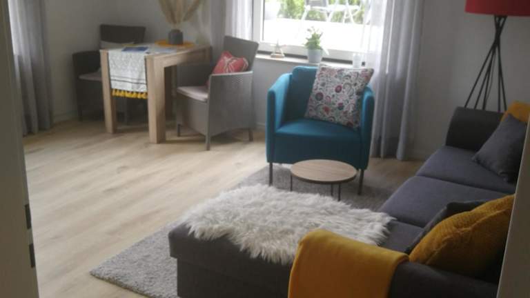 Die Ferienwohnung umfasst 2 Schlafzimmer, ein Wohnzimmer mit Flachbild-TV sowie eine gut ausgestattete Küche, die unter anderem über einen Kühlschrank und Geschirrspüler verfügt. Zudem gibt es ein Badezimmer mit Dusche. Handtücher und Bettwäsche werden bereitgestellt, die Unterkunft verfügt zudem über eine Terrasse mit Gartenblick.
