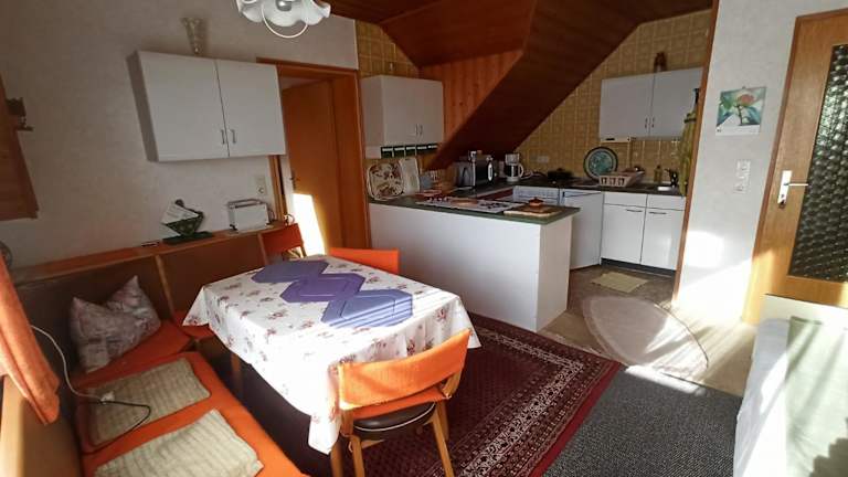 Die Ferienwohnung Helga Prokop bietet keine Verpflegungsmöglichkeiten vor Ort. Jedoch gibt es in der Umgebung verschiedene Restaurants und Cafés, in denen die Gäste lokale Spezialitäten und internationale Küche genießen können. So können die Gäste die kulinarische Vielfalt der Region erleben und ihre Mahlzeiten nach eigenen Wünschen gestalten.