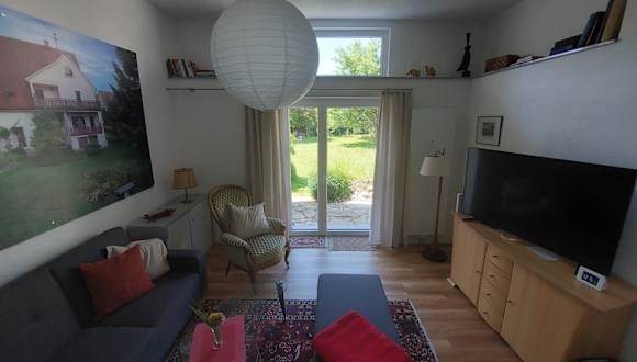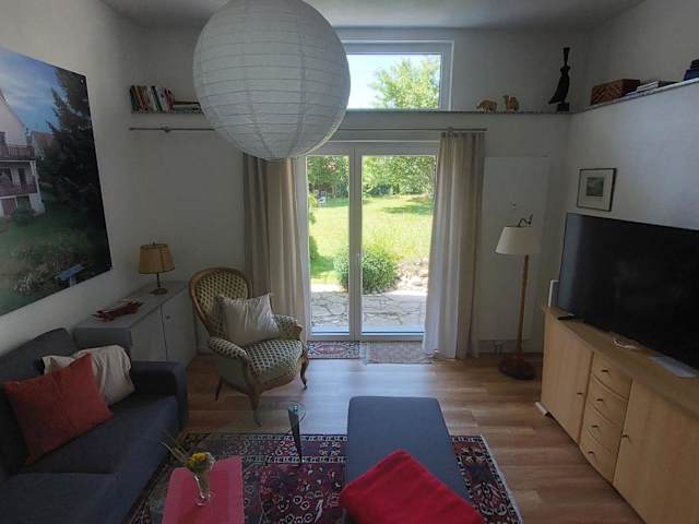 Die Ferienwohnung verfügt über ein Schlafzimmer, ein Wohnzimmer und ein Badezimmer mit Dusche. Zur Ausstattung gehören ein Flachbild-TV, eine gut ausgestattete Küche mit Kühlschrank und Geschirrspüler sowie eine Terrasse mit Gartenblick. Handtücher und Bettwäsche werden bereitgestellt.