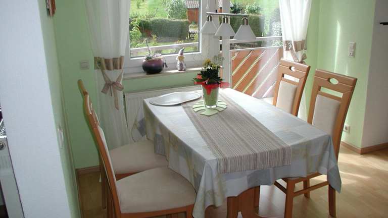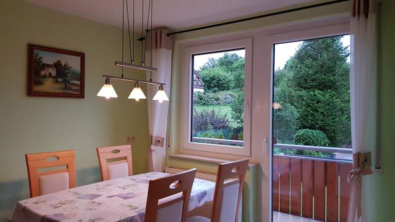 Die Ferienwohnung befindet sich im oberen Stockwerk unseres freistehenden Hauses. Es ist alles vorhanden, was Sie für einen angenehmen Aufenthalt benötigen. Ein kostenfreier Parkplatz steht direkt vor dem Haus zur Verfügung.