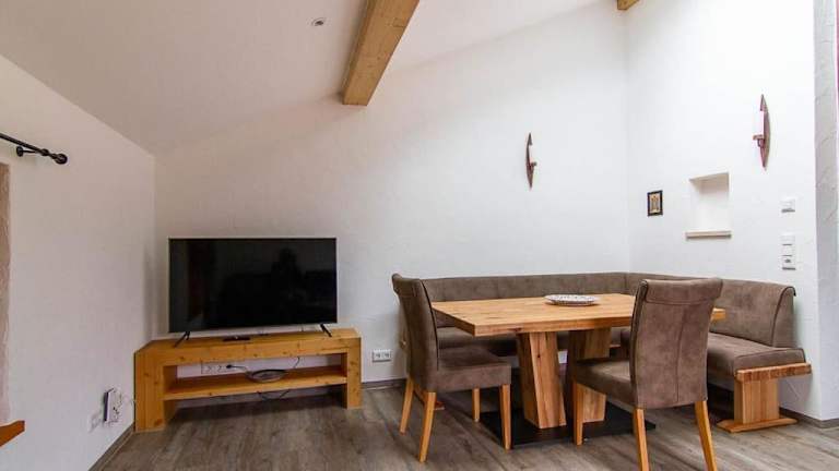 Die Ferienwohnung ist mit einer voll ausgestatteten Küche ausgestattet, die Annehmlichkeiten wie Kühlschrank, Geschirrspüler, Waschmaschine, Ofen und Herdplatte umfasst. Dies ermöglicht Gästen die Selbstverpflegung während ihres Aufenthalts.