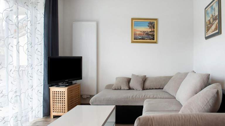 Die Ferienwohnung besteht aus einem Schlafzimmer, einem Wohnzimmer und einem Badezimmer, das mit einer Dusche und kostenlosen Pflegeprodukten ausgestattet ist. Handtücher und Bettwäsche werden bereitgestellt.