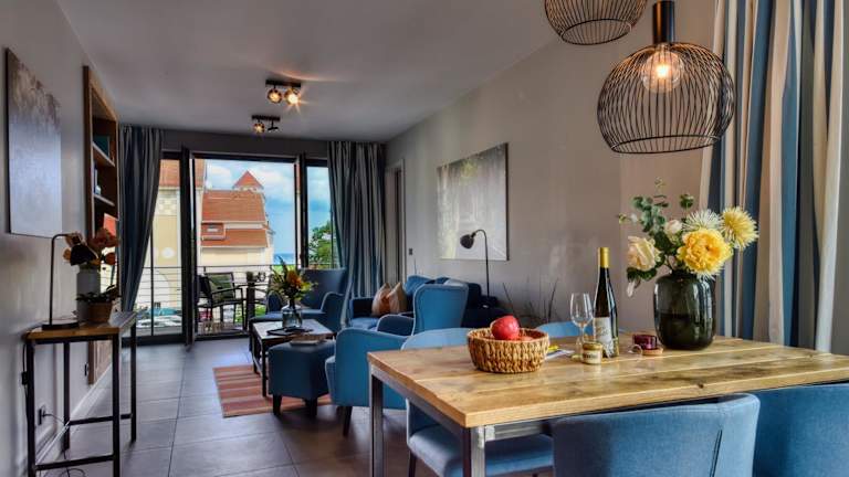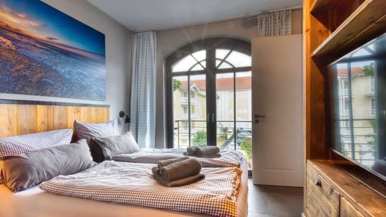 Die Ferienwohnung verfügt über einen Balkon, zwei Schlafzimmer, ein Wohnzimmer sowie eine gut ausgestattete Küche mit Kühlschrank und Geschirrspüler. Handtücher und Bettwäsche werden zur Verfügung gestellt.