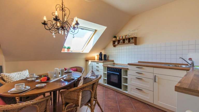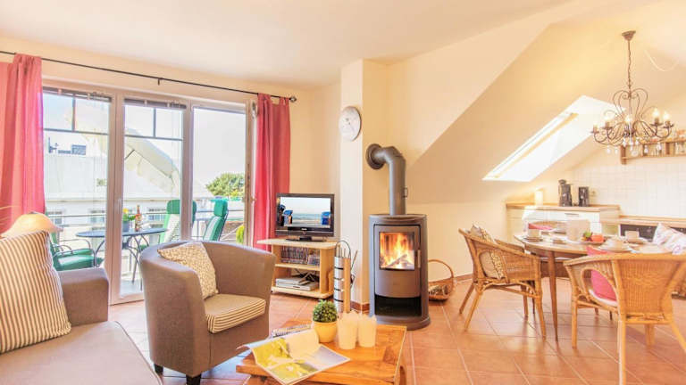 Die Ferienwohnung verfügt über 1 Schlafzimmer, ein Wohnzimmer sowie eine voll ausgestattete Küchenzeile mit Kühlschrank und Kaffeemaschine. Das Badezimmer ist mit einer Dusche und einem Haartrockner ausgestattet. Zur weiteren Ausstattung gehören ein Flachbild-TV und ein CD-Player.