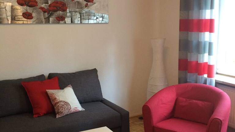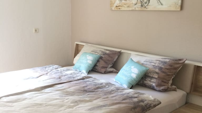 Die Ferienwohnung verfügt über 1 Schlafzimmer, ein Wohnzimmer mit einem Flachbild-TV sowie eine gut ausgestattete Küche mit Kühlschrank und Geschirrspüler. Ein Badezimmer mit Dusche ist ebenfalls vorhanden. Handtücher und Bettwäsche werden bereitgestellt.