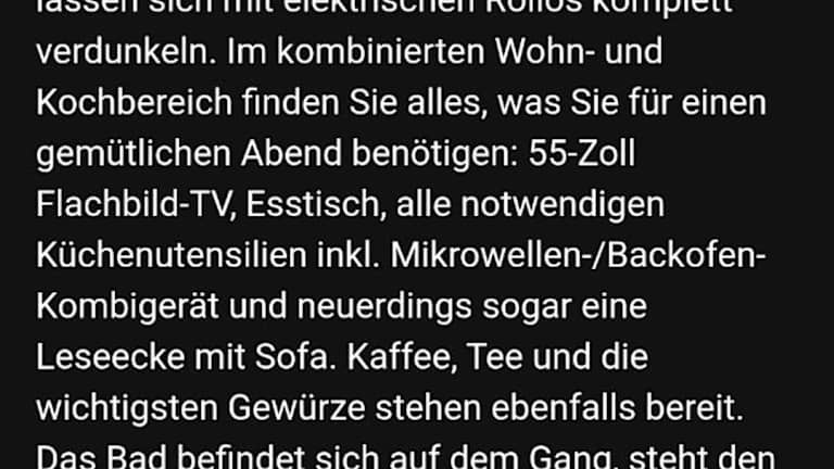 Die Ferienwohnung umfasst 1 Schlafzimmer, ein Wohnzimmer sowie eine voll ausgestattete Küchenzeile mit Kühlschrank und Kaffeemaschine. Darüber hinaus gibt es ein Badezimmer mit Dusche und Haartrockner. Handtücher und Bettwäsche sind in der Unterkunft vorhanden.