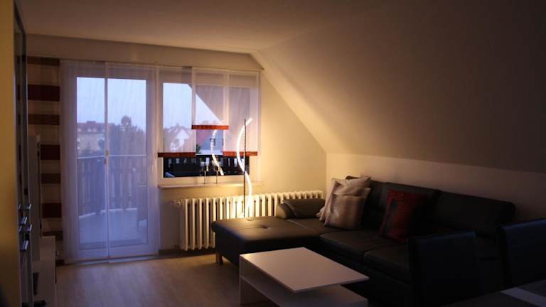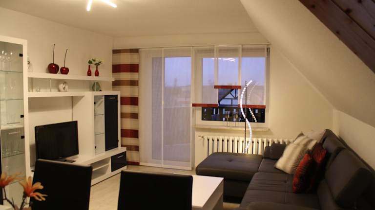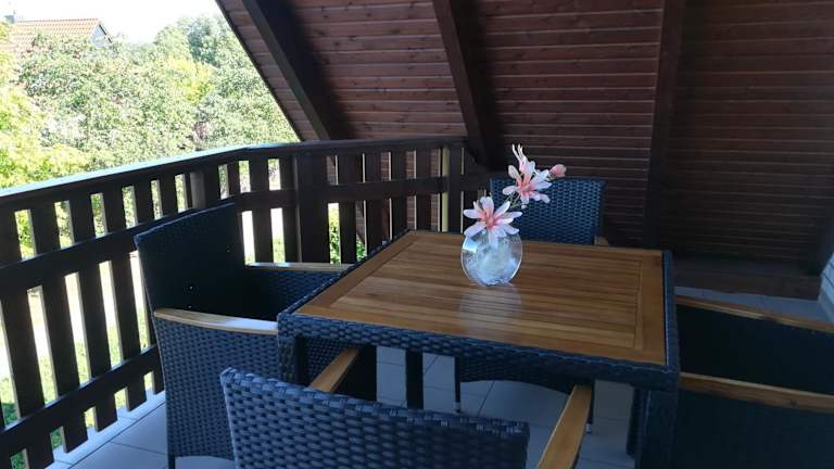 Die Ferienwohnung bietet einen Balkon mit Gartenblick, ein Schlafzimmer, ein Wohnzimmer, einen Satelliten-Flachbild-TV und eine gut ausgestattete Küche. Ein Badezimmer mit Dusche und Badewanne ist ebenfalls vorhanden. Für zusätzlichen Komfort sorgt eine Terrasse.