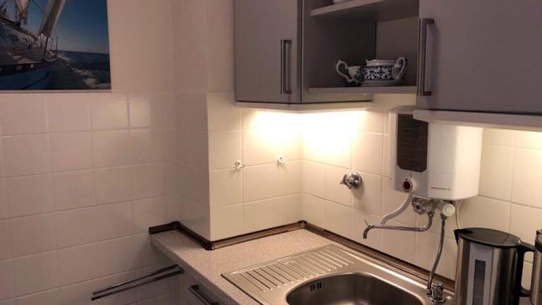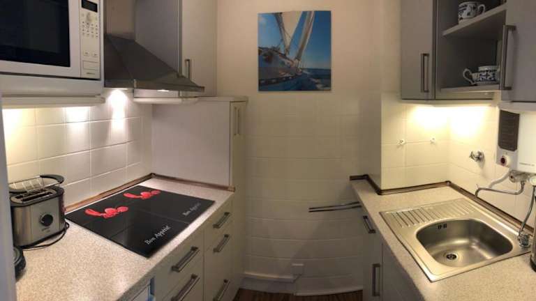 Die Unterkunft bietet eine voll ausgestattete Küche mit Kühlschrank. Handtücher und Bettwäsche werden bereitgestellt.