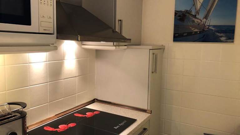 Die Ferienwohnung verfügt über ein Schlafzimmer, ein Wohnzimmer mit Kabel-TV und eine voll ausgestattete Küche. Es sind Gartenmöbel vorhanden, und die Gäste haben Zugang zu einem Balkon.