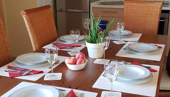 Die Unterkunft verfügt über eine voll ausgestattete Küche mit Kühlschrank, Geschirrspüler, Ofen, Herdplatte, Toaster, Kaffeemaschine und Wasserkocher. Eine Verpflegung wird nicht ausdrücklich erwähnt.