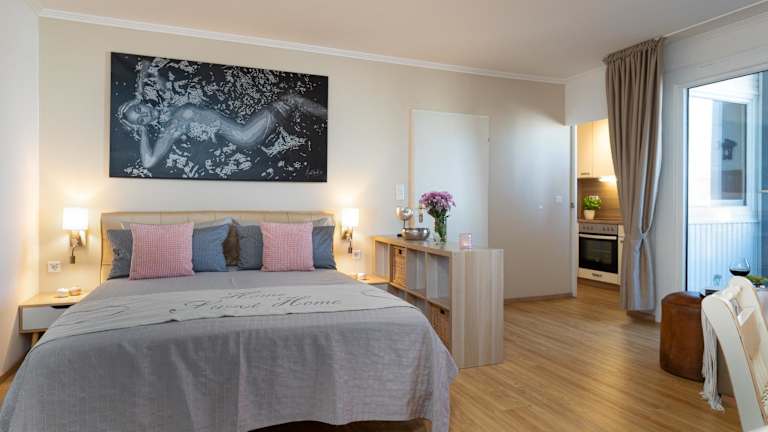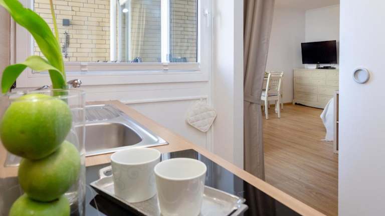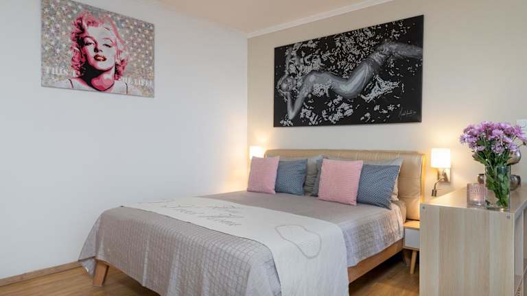 Die Wohnung besteht aus einem Schlafzimmer, einem Wohnzimmer und einer voll ausgestatteten Küche, die mit einem Kühlschrank und einer Kaffeemaschine ausgestattet ist. Es gibt ein Badezimmer mit Dusche und Haartrockner. Handtücher und Bettwäsche werden bereitgestellt. Die Unterkunft umfasst Nichtraucherzimmer und bietet Einrichtungen für behinderte Gäste.