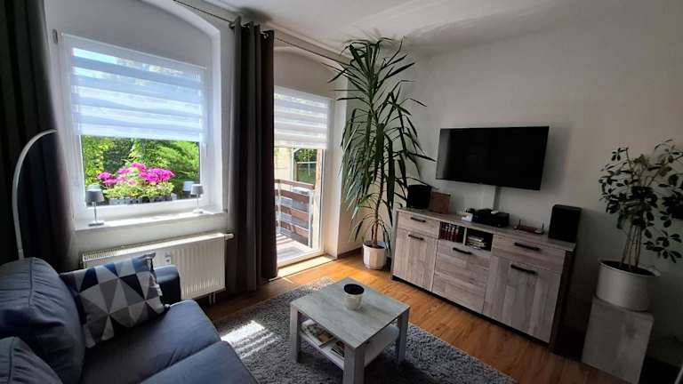 Die Ferienwohnung im Zschopauer Herzen bietet komfortable Übernachtungsmöglichkeiten mit einem Schlafzimmer, einem Wohnzimmer und einer eigenen Terrasse, die einen schönen Blick auf den Garten erlaubt. Zu den Annehmlichkeiten zählen kostenloses WLAN und ein exklusiver Privatparkplatz. Haustiere sind gestattet, wobei möglicherweise Gebühren anfallen können.