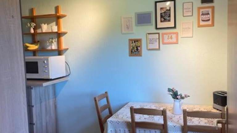 Die Unterkunft bietet ein Schlafzimmer, ein Wohnzimmer, eine voll ausgestattete Küche mit Kühlschrank und Kaffeemaschine sowie ein Badezimmer mit Dusche und Haartrockner. Handtücher und Bettwäsche werden bereitgestellt.