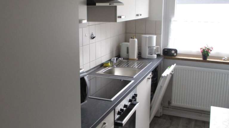 Die Ferienwohnung verfügt über zwei Schlafzimmer, ein Wohnzimmer mit Flachbild-TV, eine gut ausgestattete Küche mit Kühlschrank und Geschirrspüler sowie ein Badezimmer mit Dusche. Handtücher und Bettwäsche werden bereitgestellt.