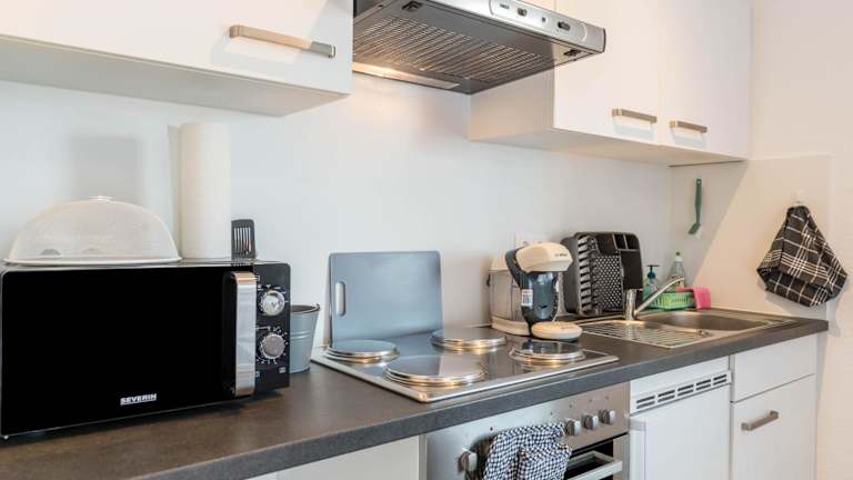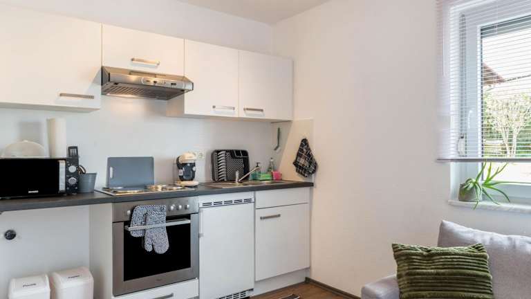 Die Ferienwohnung umfasst ein Schlafzimmer, ein Wohnzimmer und eine voll ausgestattete Küche mit Kühlschrank und Kaffeemaschine sowie ein Badezimmer mit Dusche und kostenlosen Pflegeprodukten. Handtücher und Bettwäsche werden bereitgestellt.