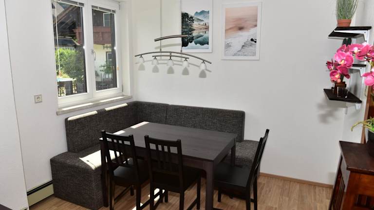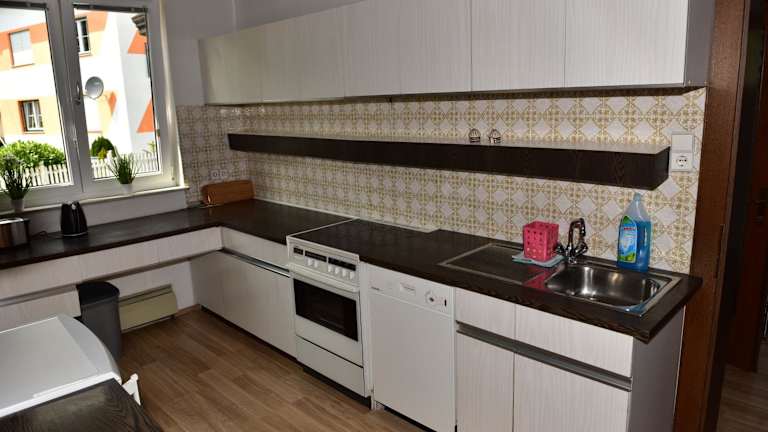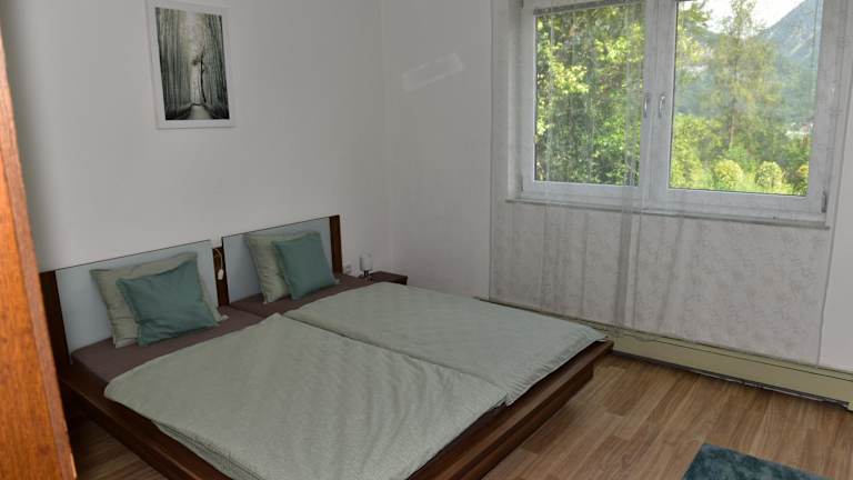 Die Ferienwohnung verfügt über zwei Schlafzimmer, ein Wohnzimmer und eine gut ausgestattete Küche. Ein Flachbild-TV ist ebenfalls vorhanden.