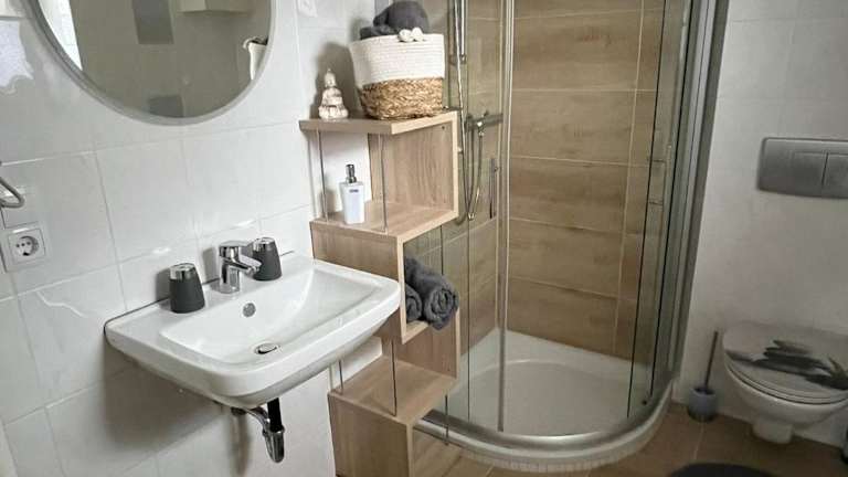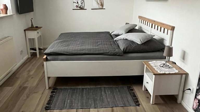 Die Ferienwohnung umfasst ein Schlafzimmer, eine Küchenzeile, die mit einem Kühlschrank und einer Mikrowelle ausgestattet ist, sowie ein Badezimmer mit Dusche und Haartrockner. Handtücher und Bettwäsche werden zur Verfügung gestellt.