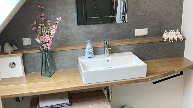 Die Ferienwohnung verfügt über 1 Schlafzimmer und ein Wohnzimmer. Zur Ausstattung gehören ein Flachbild-TV, eine gut ausgestattete Küche mit Kühlschrank und Geschirrspüler sowie ein Badezimmer mit Dusche. Handtücher und Bettwäsche werden bereitgestellt. Eine Terrasse ist ebenfalls vorhanden.