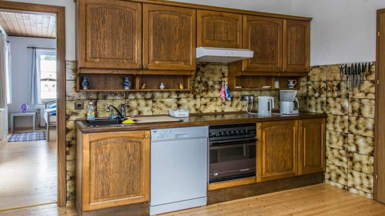 Die Ferienwohnung beinhaltet 2 Schlafzimmer, ein Wohnzimmer, einen Flachbild-TV, eine gut ausgestattete Küche mit Kühlschrank und Geschirrspüler sowie 1 Badezimmer mit Dusche. Handtücher und Bettwäsche werden bereitgestellt.