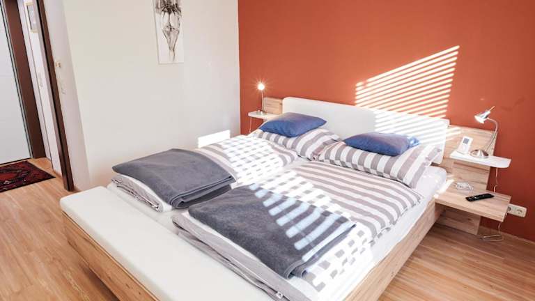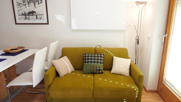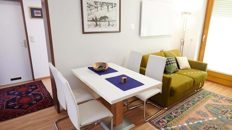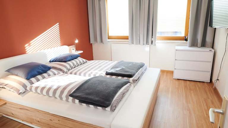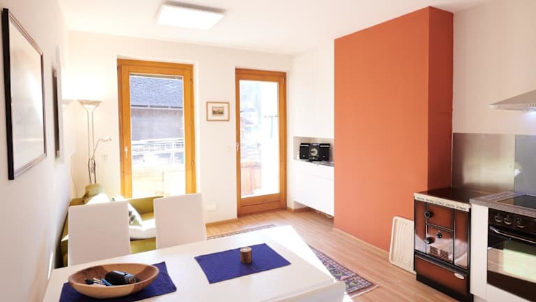 Die Ferienwohnung verfügt über ein gemütliches Schlafzimmer, ein geräumiges Wohnzimmer und eine Terrasse mit herrlichem Bergblick. Zur Ausstattung gehören ein Flachbild-TV und eine voll ausgestattete Küche mit Kühlschrank und Backofen. Das Badezimmer ist mit einer Dusche ausgestattet. Handtücher und Bettwäsche werden gestellt.