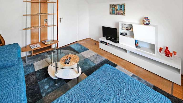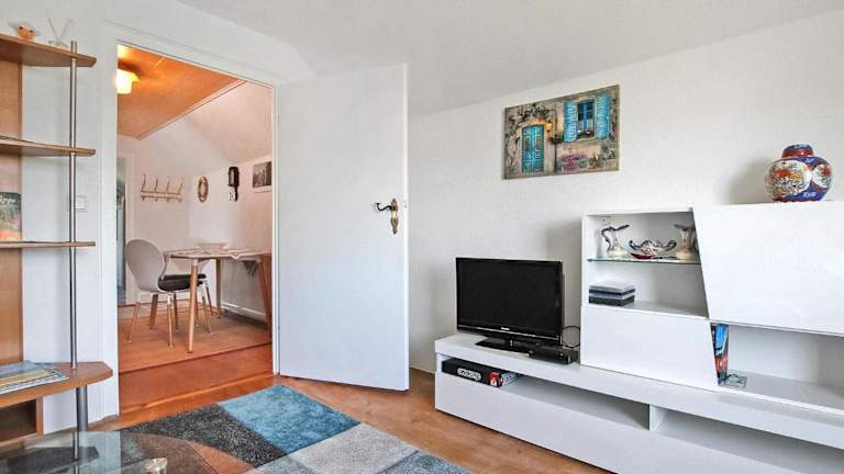 Die Ferienwohnung ist mit einem Schlafzimmer ausgestattet und bietet ein Wohnzimmer mit Kabel-Flachbild-TV. Die Einrichtung ist darauf ausgelegt, einen komfortablen Aufenthalt zu gewährleisten.