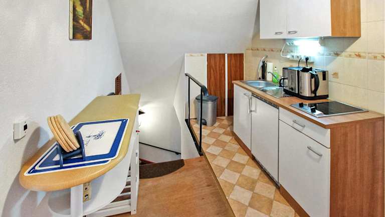 Die Unterkunft verfügt über eine voll ausgestattete Küche mit Kühlschrank, die den Gästen die Möglichkeit bietet, Mahlzeiten selbst zuzubereiten.