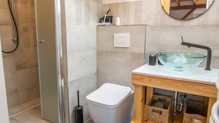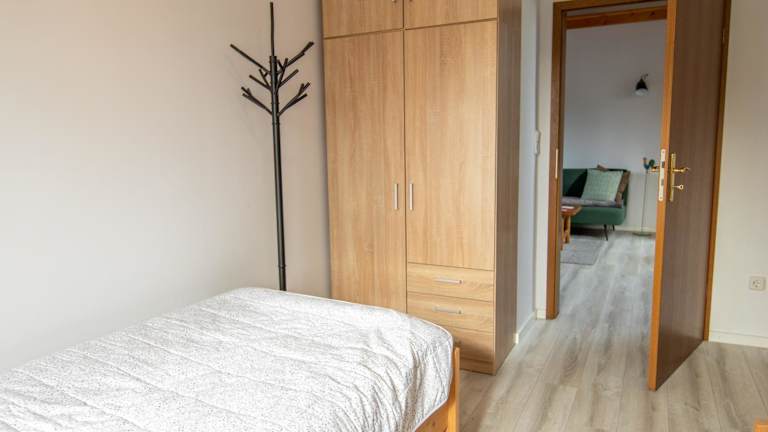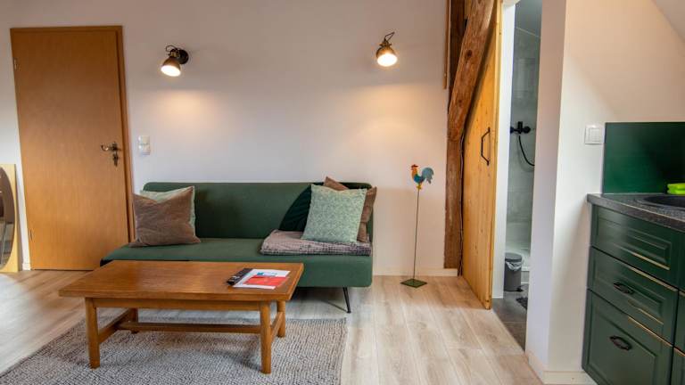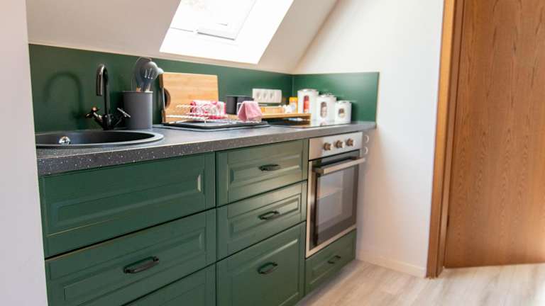 Die Unterkunft bietet zwei Schlafzimmer, ein Wohnzimmer sowie eine voll ausgestattete Küchenzeile mit Kühlschrank und Wasserkocher. Das Badezimmer verfügt über eine Dusche und einen Haartrockner. Handtücher und Bettwäsche sind im Service enthalten.