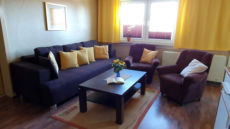 Das Apartment verfügt über zwei Schlafzimmer und ist ideal für Familien oder Gruppen von Freunden. Es bietet kostenfreies WLAN und einen Flachbild-Sat-TV für Unterhaltung. Die voll ausgestattete Küche mit Kühlschrank und Mikrowelle ermöglicht es Ihnen, Ihre eigenen Mahlzeiten zuzubereiten. Handtücher und Bettwäsche werden gestellt, um Ihren Aufenthalt so angenehm wie möglich zu gestalten.