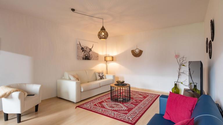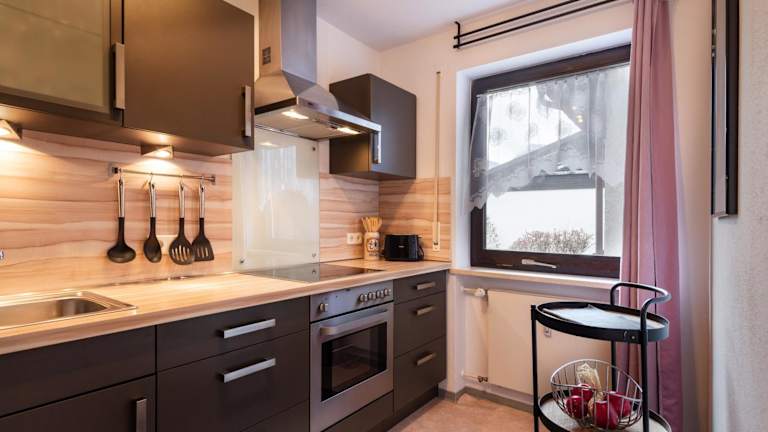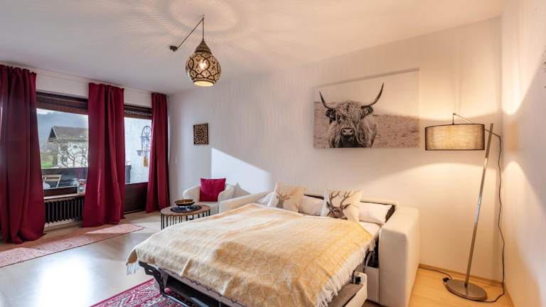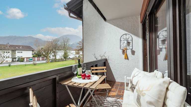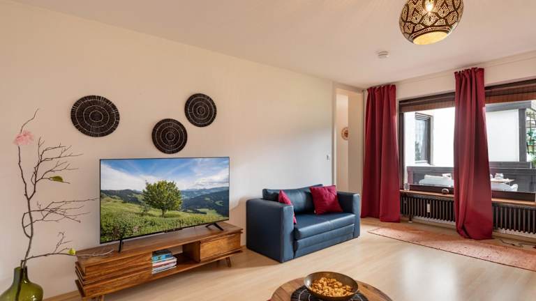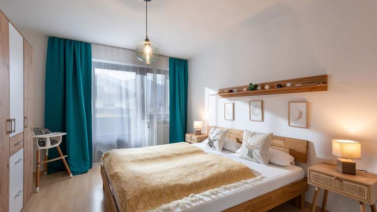 Die Ferienwohnung umfasst ein Schlafzimmer, ein Wohnzimmer und ein Badezimmer mit Dusche. Zur Ausstattung gehören ein Flachbild-TV, eine gut ausgestattete Küche mit Kühlschrank und Geschirrspüler sowie ein Balkon mit Bergblick. Handtücher und Bettwäsche werden bereitgestellt.
