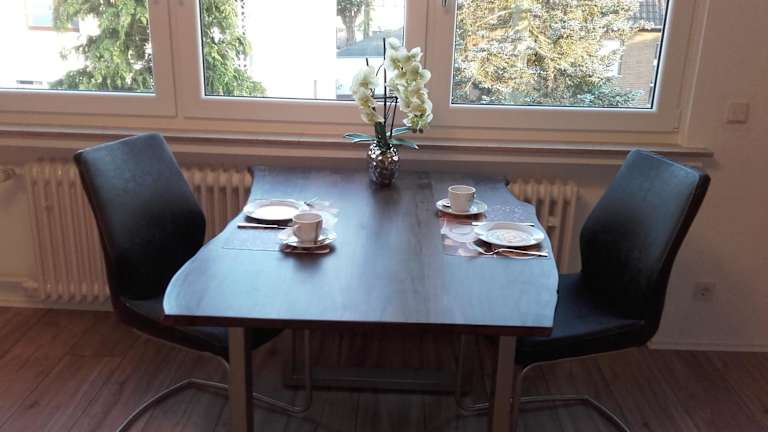 Die Ferienwohnung Kreuder in Bergisch Gladbach bietet eine komfortable Unterkunft mit kostenfreiem WLAN in einem ruhigen Stadtteil. In der Nähe finden Sie verschiedene Restaurants und Lebensmittelmärkte. Die gute Anbindung an die öffentlichen Verkehrsmittel ermöglicht es Ihnen, bequem ins Zentrum von Köln zu gelangen. Die Lage der Ferienwohnung ist auch ideal für Aktivitäten wie Reiten und Radfahren. Der Flughafen Köln/Bonn ist nur eine kurze Autofahrt entfernt.