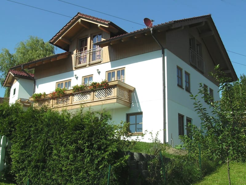 Die Wohnfläche beträgt 55 m², die Grundfläche 67 m². Die Ferienwohnung besteht aus einem Schlafzimmer und einem großen Wohn-Esszimmer mit offener Küche sowie einem Duschraum mit Toilette und Waschbecken. Das Haus wurde im Oktober 2005 fertiggestellt und ist ein Öko-Holzhaus. Daher ist das Raumklima sehr angenehm und auch im Sommer wird es im Dachgeschoss nicht zu warm. A propos angenehmes Raumklima: die Ferienwohnung ist eine Nichtraucherwohnung! Beheizt wird das Haus über eine Wärmepumpe mit einer Fußbodenheizung. Die Bodentemperatur liegt dabei nur ca. drei Grad höher als die Raumtemperatur.