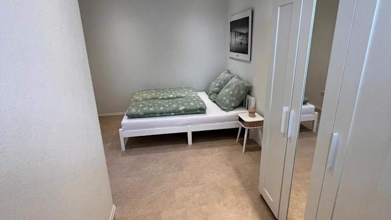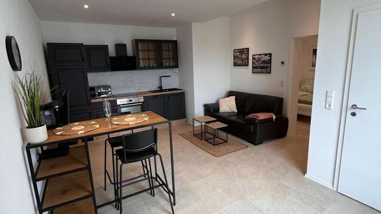 Die Ferienwohnung besteht aus einem Schlafzimmer, einem Wohnzimmer und einer voll ausgestatteten Küche, die mit einem Kühlschrank und einer Kaffeemaschine ausgestattet ist. Des Weiteren steht ein Badezimmer mit Dusche und kostenlosen Pflegeprodukten zur Verfügung. Handtücher und Bettwäsche werden für die Gäste bereitgestellt.