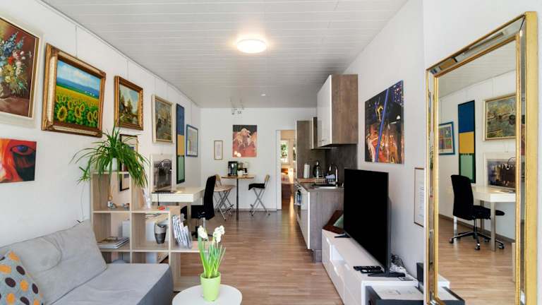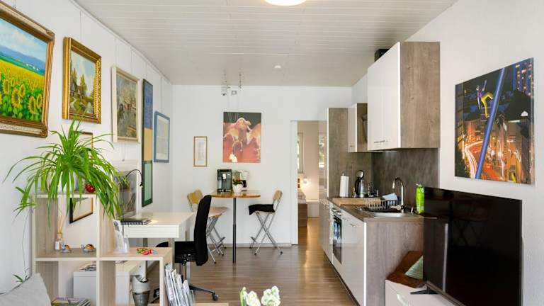 Die Ferienwohnung umfasst 2 Schlafzimmer und eine voll ausgestattete Küche mit Kühlschrank und Geschirrspüler. Ein Badezimmer mit Dusche und kostenlosen Pflegeprodukten ist ebenfalls vorhanden. Handtücher und Bettwäsche werden bereitgestellt.