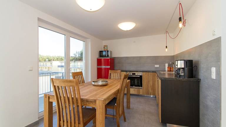 Die Ferienwohnung KWE 8 OG bietet eine moderne und gut ausgestattete Unterkunft in Graal-Müritz. Sie umfasst zwei Schlafzimmer sowie eine voll ausgestattete Küche. Die Gäste können einen Balkon nutzen und haben Zugang zu kostenlosem WLAN sowie einem kostenlosen Privatparkplatz. Die Unterkunft ist eine Nichtraucherunterkunft, die keine Junggesellen- oder ähnliche Feiern gestattet und für den Check-in ein Mindestalter von 18 Jahren verlangt.