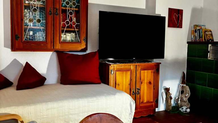 Die Ferienwohnung Lechner bietet eine gemütliche und gut ausgestattete Unterkunft zur Selbstverpflegung. Die Wohnung verfügt über eine Terrasse, die einen atemberaubenden Blick auf die umliegenden Berge und den Garten bietet. Im Innenbereich finden Sie einen komfortablen Sitzbereich mit einem bequemen Sofa und einem Flachbild-TV. Die Küche ist komplett ausgestattet und der Essbereich bietet ausreichend Platz für Mahlzeiten. Das Badezimmer ist mit einer Dusche oder einer Badewanne ausgestattet.