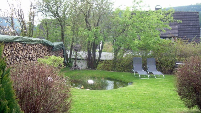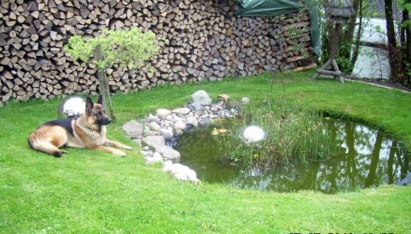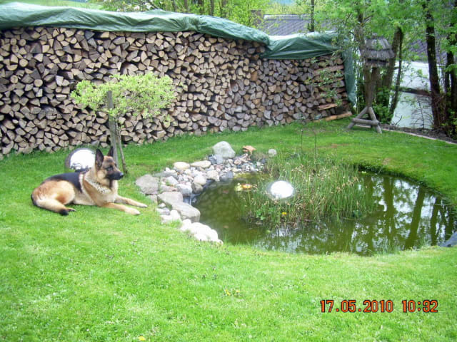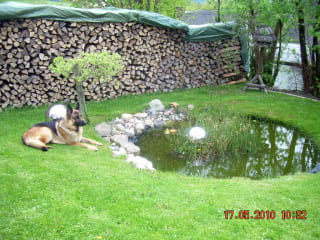 Ausstattung: Große dekorative und komfortable Ferienwohnung für bis zu 5 Personen Großer Wohn- Schlafraum mit Doppel-Schrankbetten, separates Schlafzimmer mit Doppelbetten und Kinderbett, separate Küche mit Kinderhochstuhl, Dusche/WC, Abstellraum, SAT-TV, DVD, Liegewiese mit rustikaler Sitzgruppe und Gartenteich Insgesamt drei Sitzbereiche im Außenbereich. eigener Eingang, eigener Parkplatz