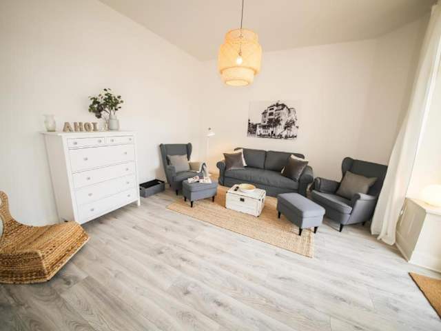 Die Ferienwohnung LUV im Haus Demory bietet Ihnen ein gemütliches Apartment mit Sat-TV. Die Küche ist voll ausgestattet mit einem Kühlschrank, einem Backofen, einem Geschirrspüler, einer Kaffeemaschine und einem Wasserkocher. So können Sie sich ganz bequem selbst versorgen und Ihre Lieblingsgerichte zubereiten.