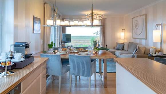 Das Apartment Ferienwohnung Luxus mit Wattenmeerblick befindet sich in einer ruhigen Lage auf der Nordseeinsel Sylt. Von der Terrasse aus haben Sie einen direkten Blick auf die Nordsee. Das Stadtzentrum von Morsum mit seinen vielen Geschäften und Restaurants ist nur 5 Gehminuten entfernt. Das Naturschutzgebiet Morsum-Kliff, bekannt für seine beeindruckende Landschaft, ist nur 2,5 km entfernt. Von hier aus können Sie Ausflüge in den Naturpark Wattenmeer unternehmen und die einzigartige Natur der Insel erkunden.