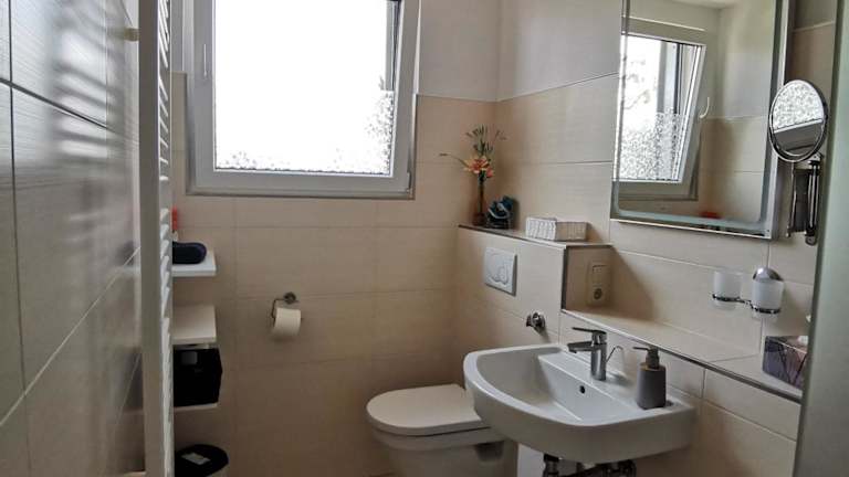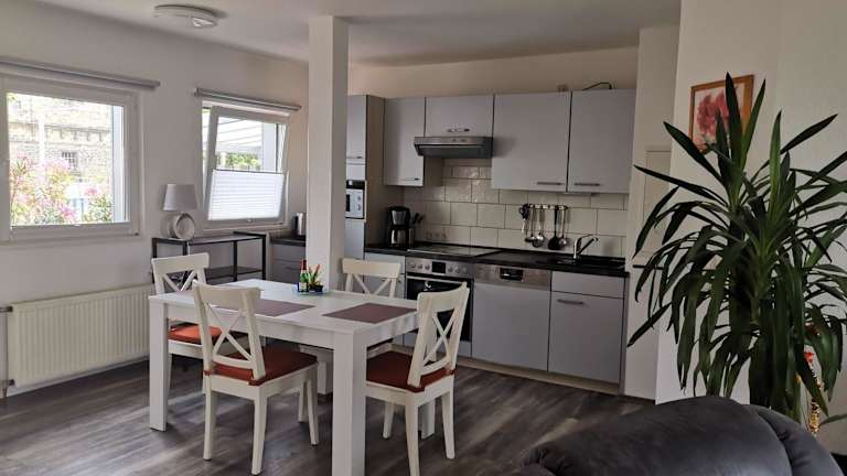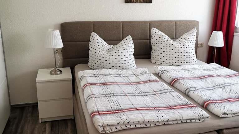Die Ferienwohnung verfügt über zwei Schlafzimmer, ein Wohnzimmer und ein Badezimmer mit Dusche. Zudem gibt es einen Flachbild-TV sowie eine gut ausgestattete Küche mit Kühlschrank und Geschirrspüler. Für zusätzlichen Komfort können Handtücher und Bettwäsche auf Anfrage bereitgestellt werden.