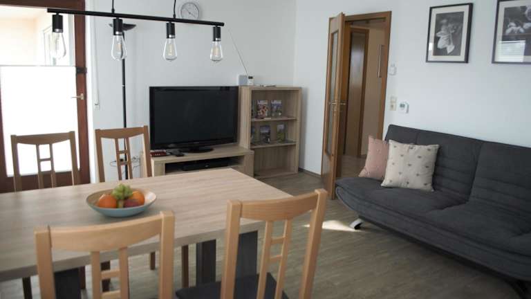 Die Ferienwohnung Marquardt bietet Unterkunftsmöglichkeiten in einem charmanten Ambiente und umfasst eine Terrasse mit Blick auf den Garten.