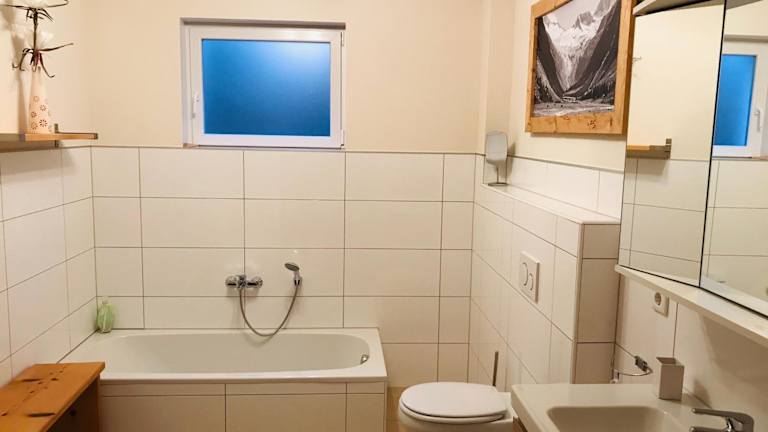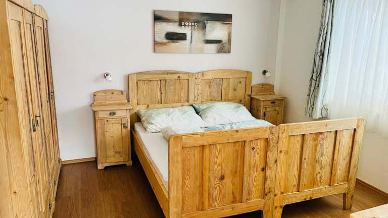 Die Ferienwohnung verfügt über zwei Schlafzimmer, ein Wohnzimmer mit einem Satelliten Flachbild-TV, eine gut ausgestattete Küche sowie ein Badezimmer mit Dusche und Badewanne. Handtücher und Bettwäsche werden bereitgestellt. Zusätzlich ist eine Terrasse mit Bergblick vorhanden.