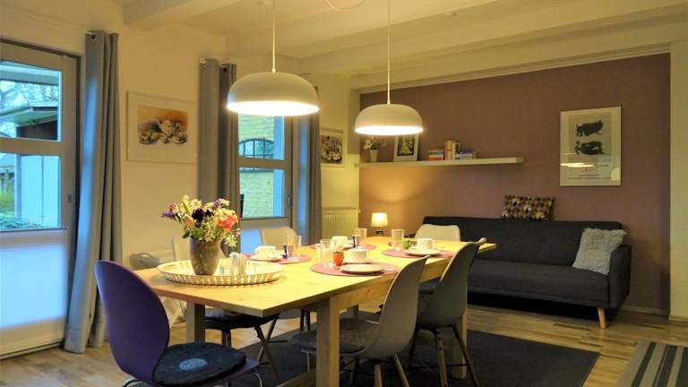 Die Unterkunft zeichnet sich durch einen Garten, eine Terrasse mit Gartenblick und kostenloses WLAN in der gesamten Unterkunft aus. Die Ferienwohnung wird von einem privaten Gastgeber betrieben und ist eine Nichtraucherunterkunft. Handtücher und Bettwäsche werden bereitgestellt. Es ist wichtig zu beachten, dass keine Feiern wie Junggesellenabschiede erlaubt sind und Haustiere nicht gestattet sind. Der Check-in ist ab 15:00 Uhr bis 19:00 Uhr möglich, der Check-out zwischen 08:00 Uhr und 11:00 Uhr.