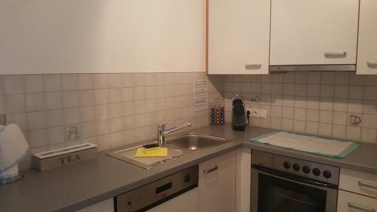 Die Ferienwohnung verfügt über ein Schlafzimmer, ein Wohnzimmer mit einem TV, eine voll ausgestattete Küche mit einem Kühlschrank und einem Geschirrspüler sowie ein Badezimmer mit einem Haartrockner. Handtücher und Bettwäsche sind in der Unterkunft inklusive.