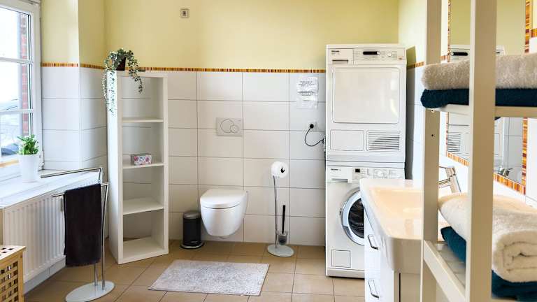 Die Ferienwohnung besteht aus zwei Schlafzimmern sowie einem Wohnzimmer, das mit einem Fernseher ausgestattet ist. Des Weiteren stehen eine Waschmaschine sowie Handtücher und Bettwäsche zur Verfügung.
